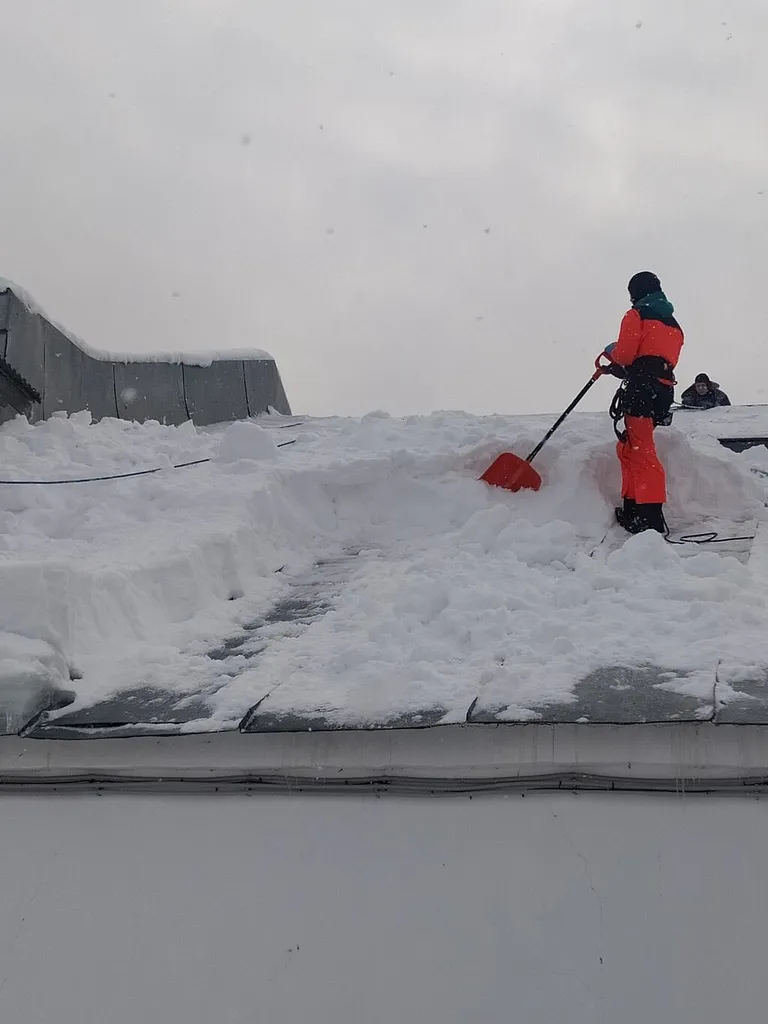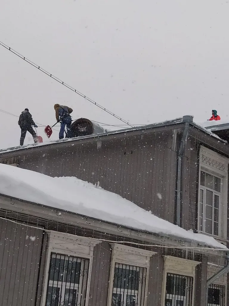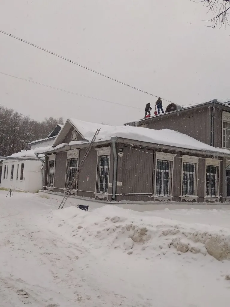 Сегодня, 21 января, была проведена очистка крыши Палехского дома культуры после обильных снегопадов.